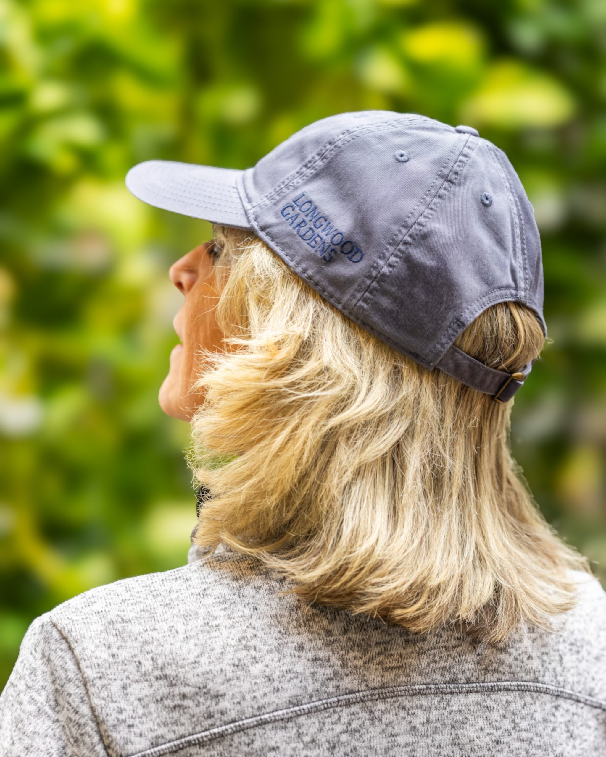 Slate blue with Longwood's signature rosette, this classic cap shows both your sporty side and your appreciation for the Gardens. It is built with a fully curved visor with an open back-strap closure to ensure it can be adjusted to your needs. It’s the perfect, long-lasting memento for your visit.