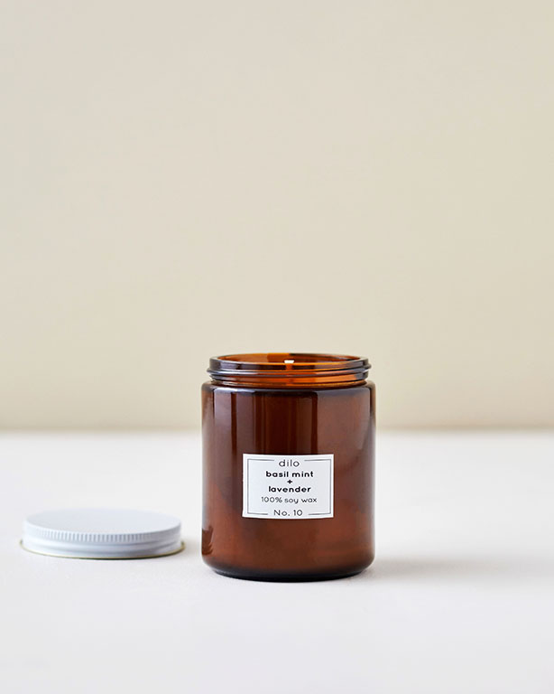 Hand poured in Philadelphia, this DILO candle has a refreshing basil, mint, and lavender scent. Incredibly fragrant, it will burn for 40 to 50 hours, made from 100% USA grown soy wax. The candle is made with cotton wicks without special additives, and it's the perfect soothing addition to any room's atmosphere.