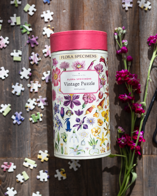 This vintage-inspired puzzle features beautiful flora specimens of all different colors and becomes a beautiful piece of botanical artwork when completed.