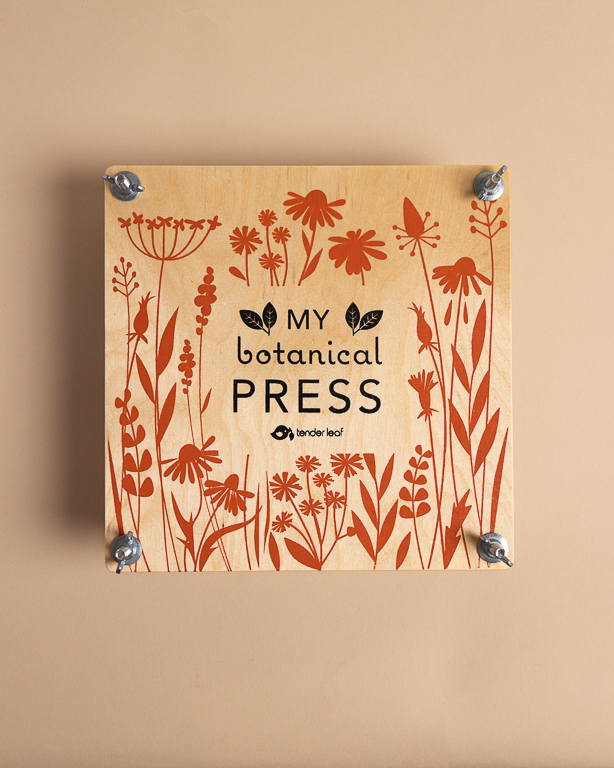 This beautifully crafted wooden flower press introduces a fun and creative activity to kids. The flower press is paired with paper sheets and secured with metal screws at each corner to tightly press the pages together.