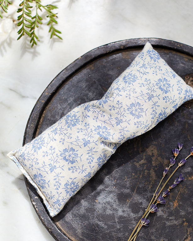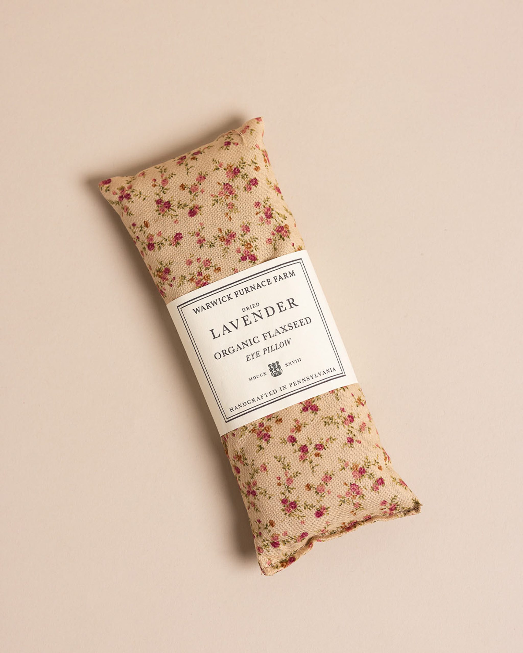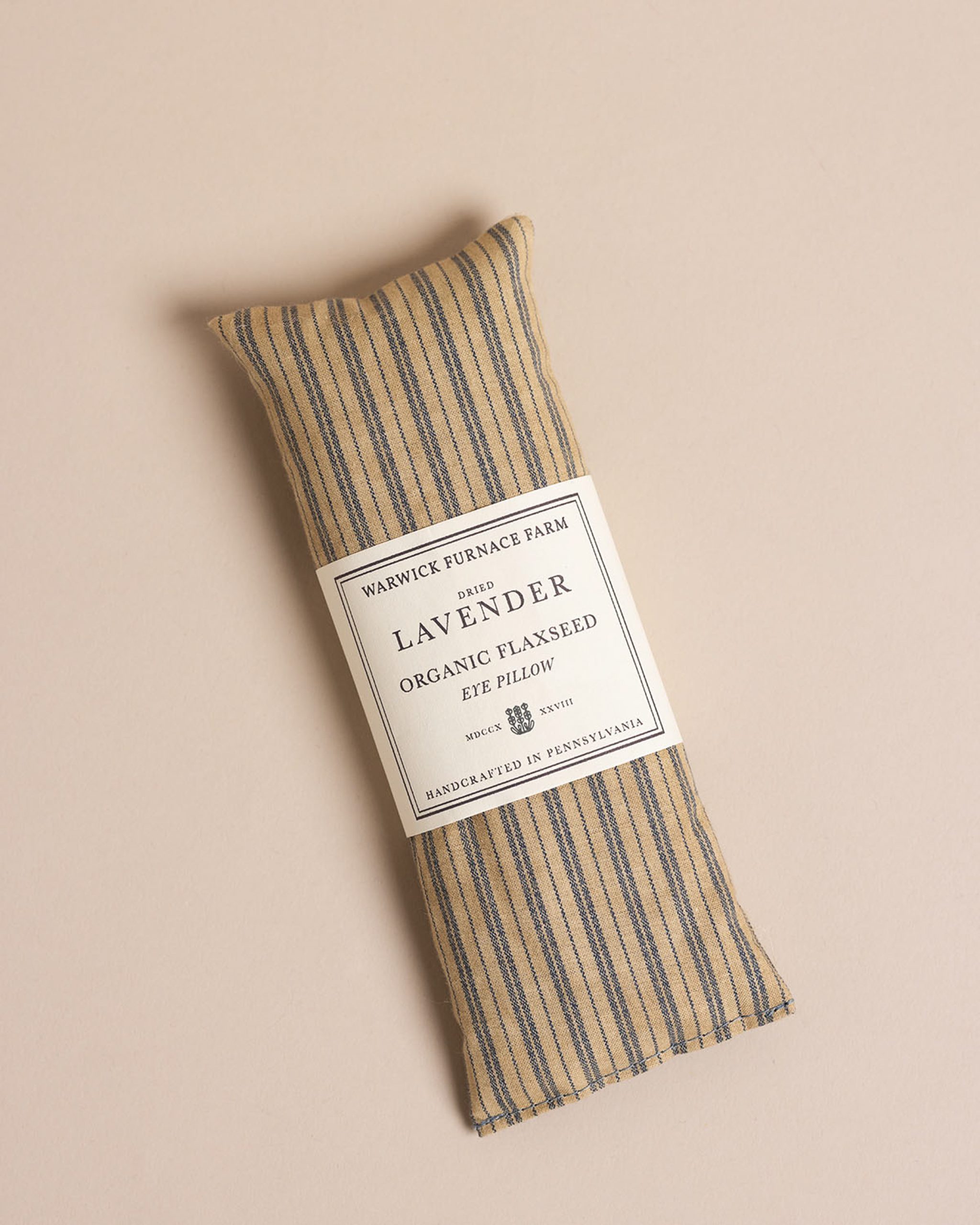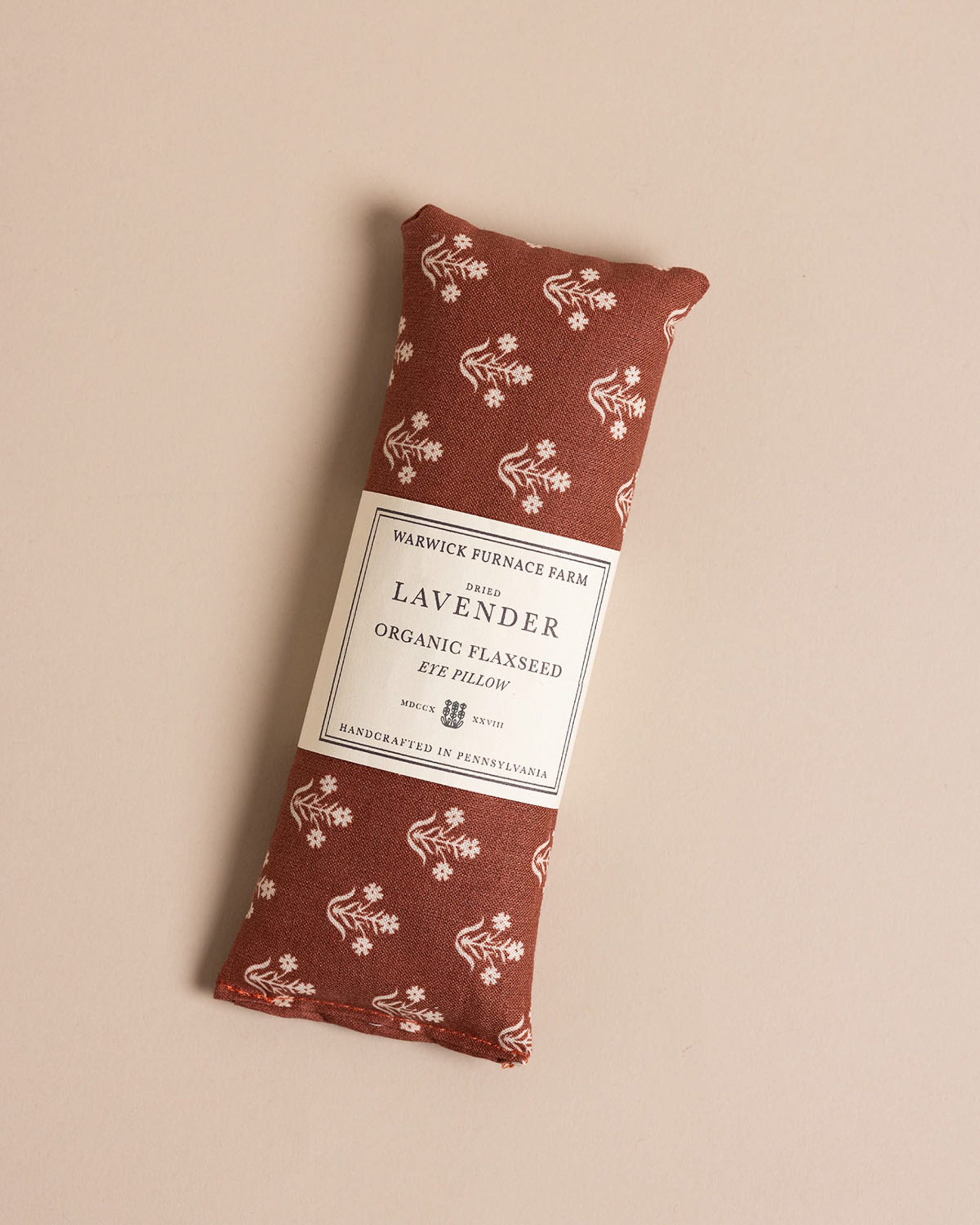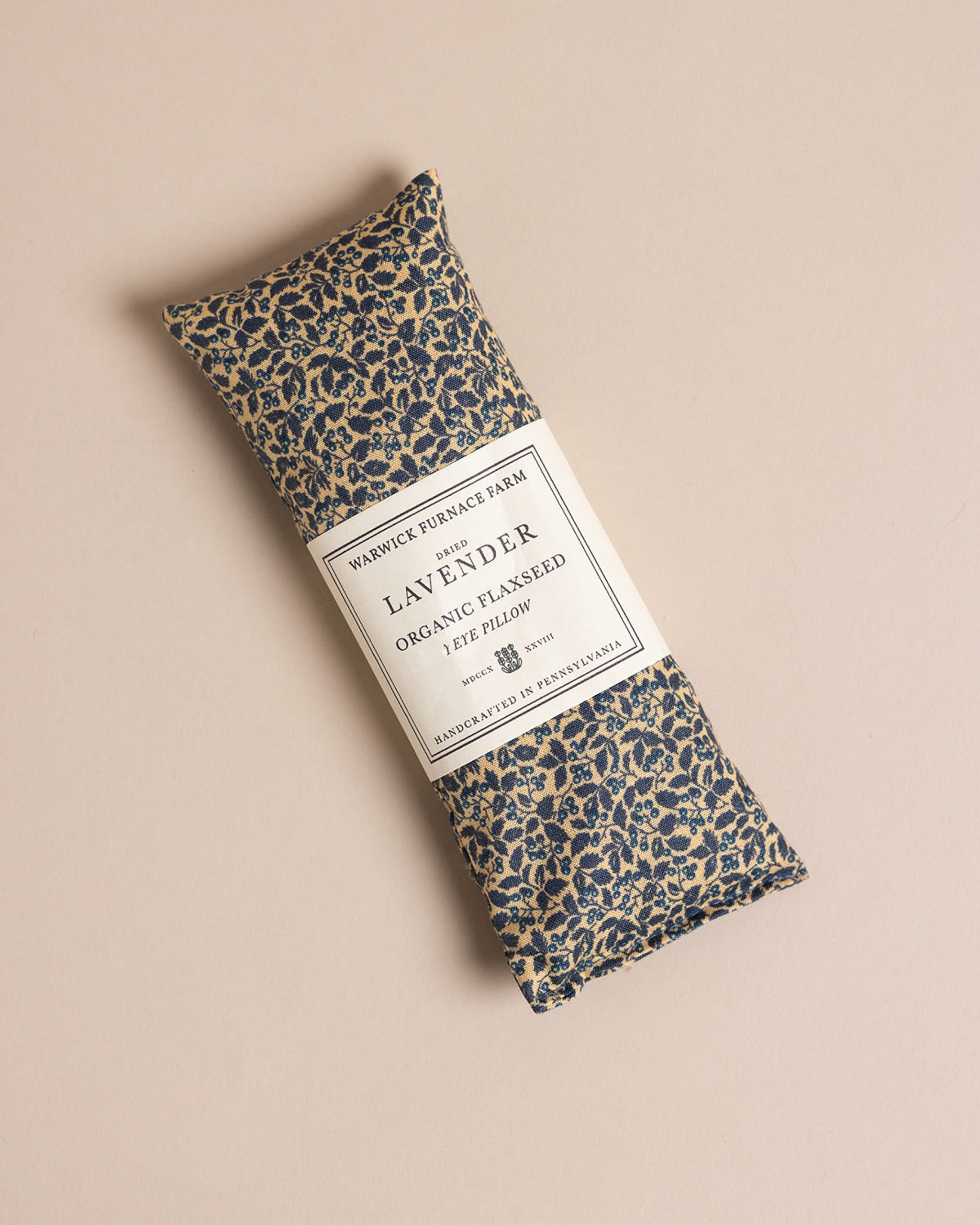 Handcrafted in Glenmoore, PA, this fabric eye pillow is filled with organic flax seeds and fragrant dried lavender buds, making for a delightful calming experience.