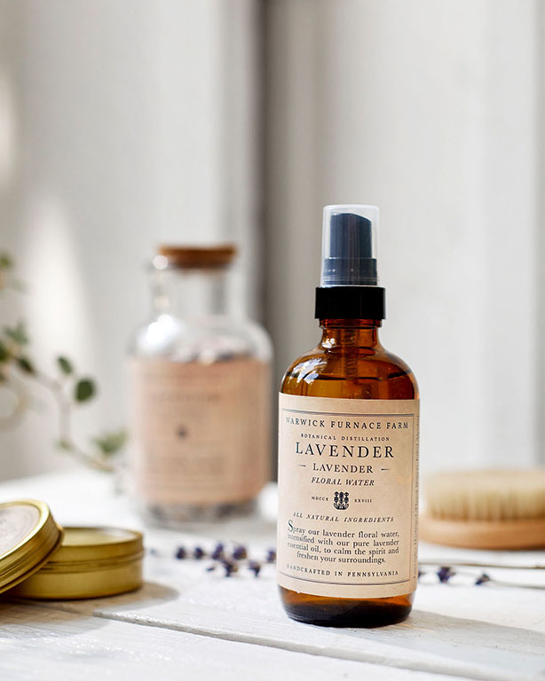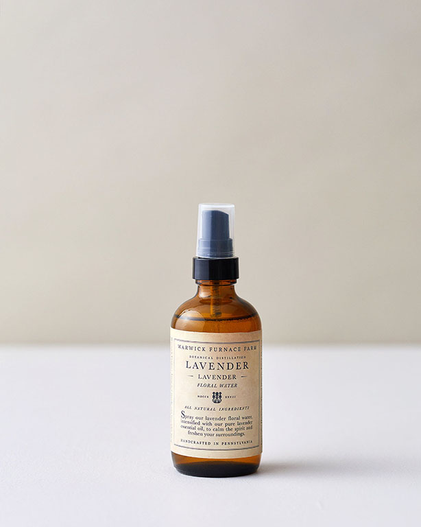 Spray this Lavender Floral Water, intensified with Warwick Furnace Farm’s lavender essential oil, to calm the spirit and freshen your surroundings. Lavender Floral Water (also known as “Hydrosol”) is a lavender-infused water-based product which is obtained through the steam distillation process used to create essential oil.