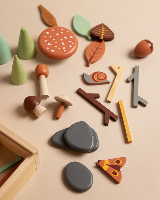 This charming and extensive tinker tray gives little ones with inquisitive minds hours of open-ended play time and discovery. Kids sort, stack, and arrange their woodland treasures, and can use the back of the lid as a chalkboard for more creative fun.