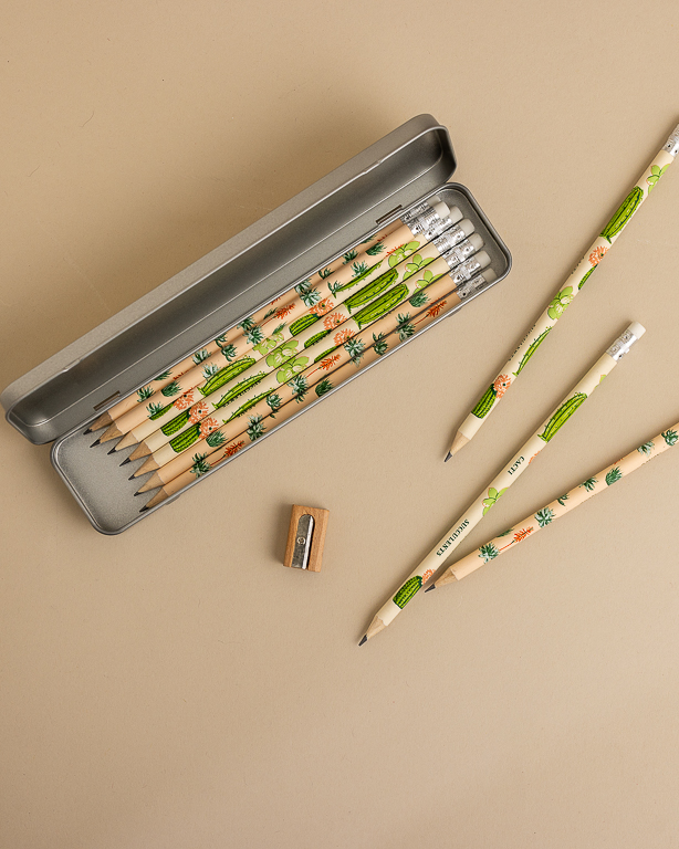 This artsy set of 10 pencils comes neatly packaged in a stylish tin, adorned with charming botanical art featuring your favorite succulents.