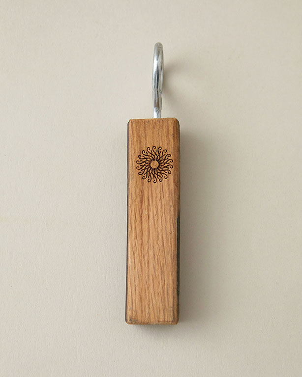 Made from sturdy locally recycled barn wood, these bottle openers have a thick steel loop. With the rosette of Longwood Gardens on its body, each one is sturdy, filling out the grip of most adults, making it perfect for any backyard party or home bar. Pop open a drink and think of your last visit to the Gardens on a nice day!